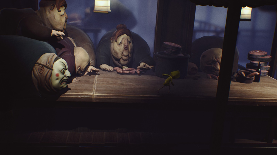 • Melanjutkan pencariannya untuk melarikan diri dari The Maw, Six harus berlari melalui ruang makan yang penuh dengan Tamu yang rakus, yang semuanya mencoba menangkap Six untuk memakannya.